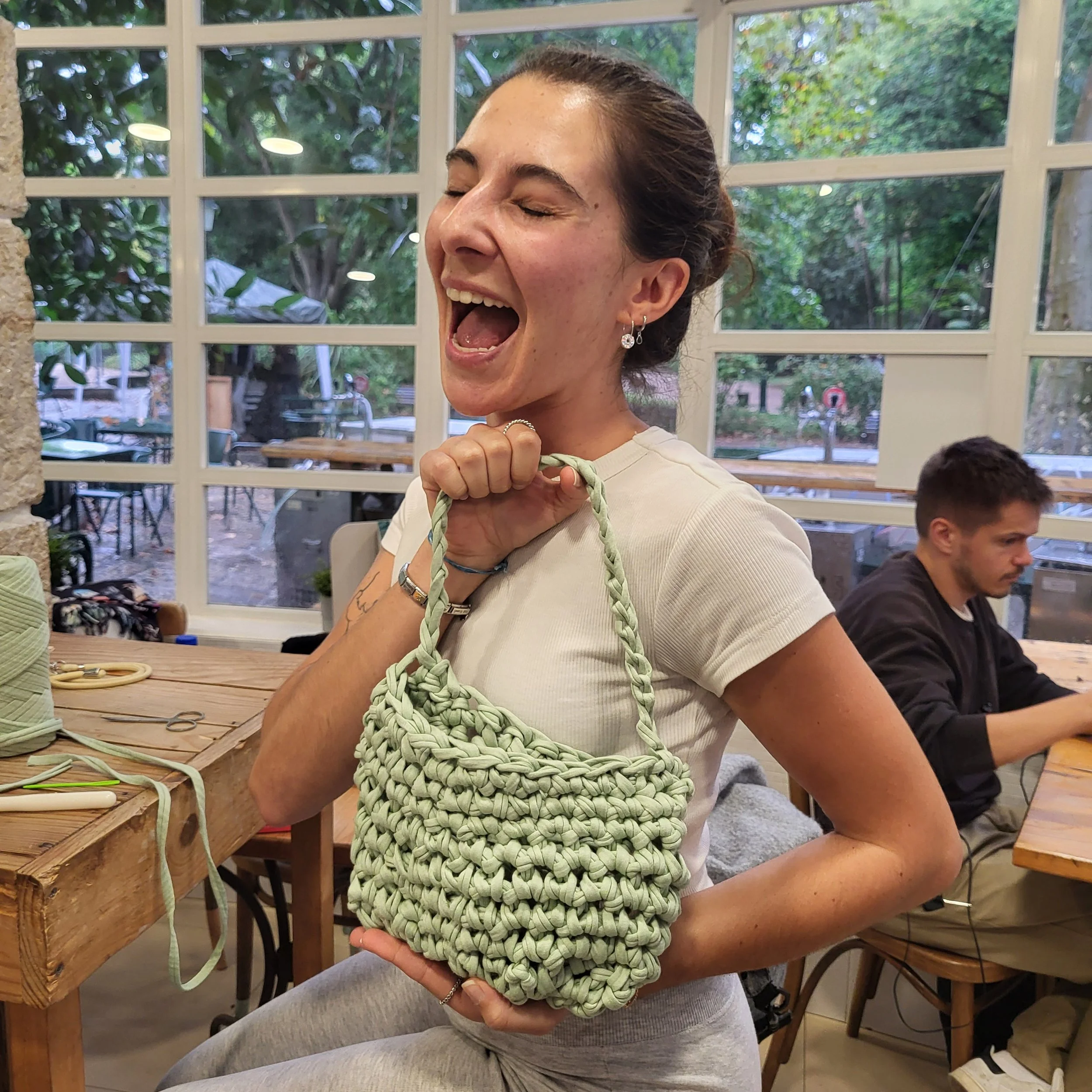 After our countless editions of Crochet & Yoga with amazing Martina (@mygrannysaidtome), we prepared this time another workshop for beginners in the middle of Lisbon, in Jardim da Estrela! Despite the weather that was predicted to be stormy, we had a lovely time with almost no rain and with a group of amazing girls, laughing, sharing our stories and learning to crochet a colourful purse. Late afternoon, we closed the workshop with a detox and flowy sequence for stress-relief, after sharing some heathy snacks. After the official closing time of the workshop, we allowed some of the girls to finish their purse project in the coffee shop of the park over a coffee and share further tips and tricks for crochet lovers. Overall, a successful and complete workshop for which we received amazing feedback! We are hoping to repeat it soon.